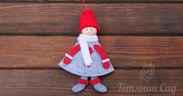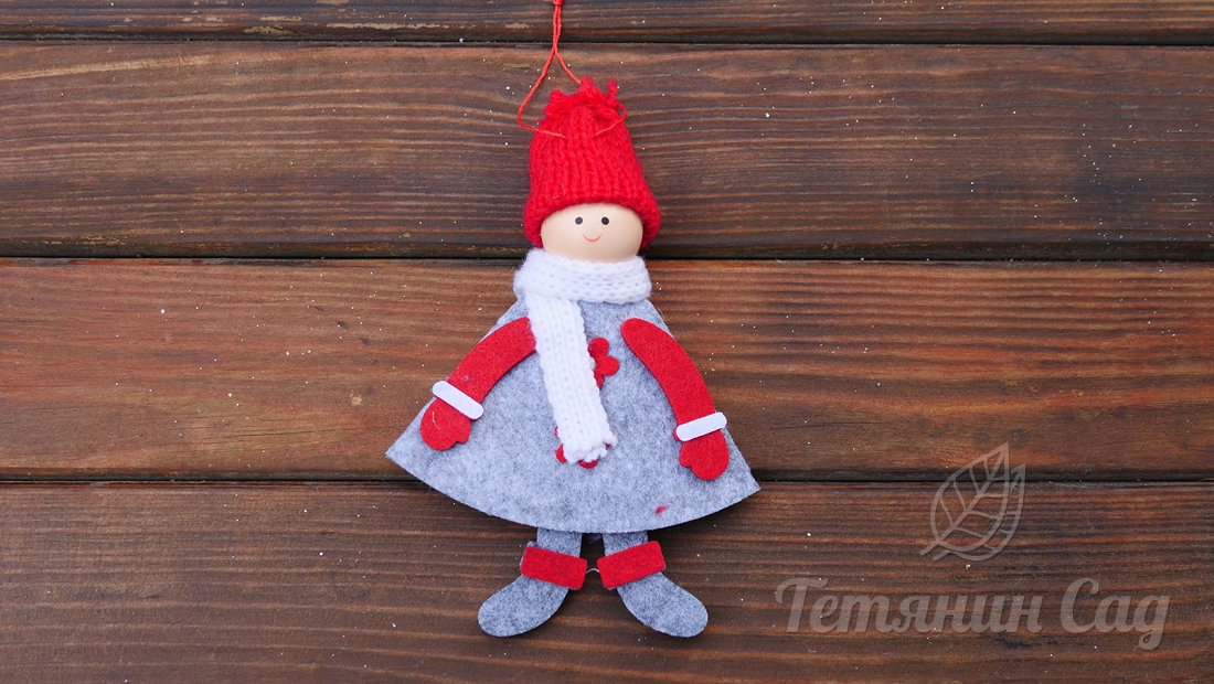 Новорічний декор - Дівчинка у сіромy (квіточки)
