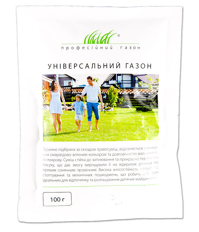 Універсальний газон - чудова трав'яниста суміш відрізняється від всіх інших свої рівномірним смарагдовим забарвленням. Сорт забезпечить тривалий хороший зовнішній вигляд на дитячих майданчиках та місцях для відпочинку.