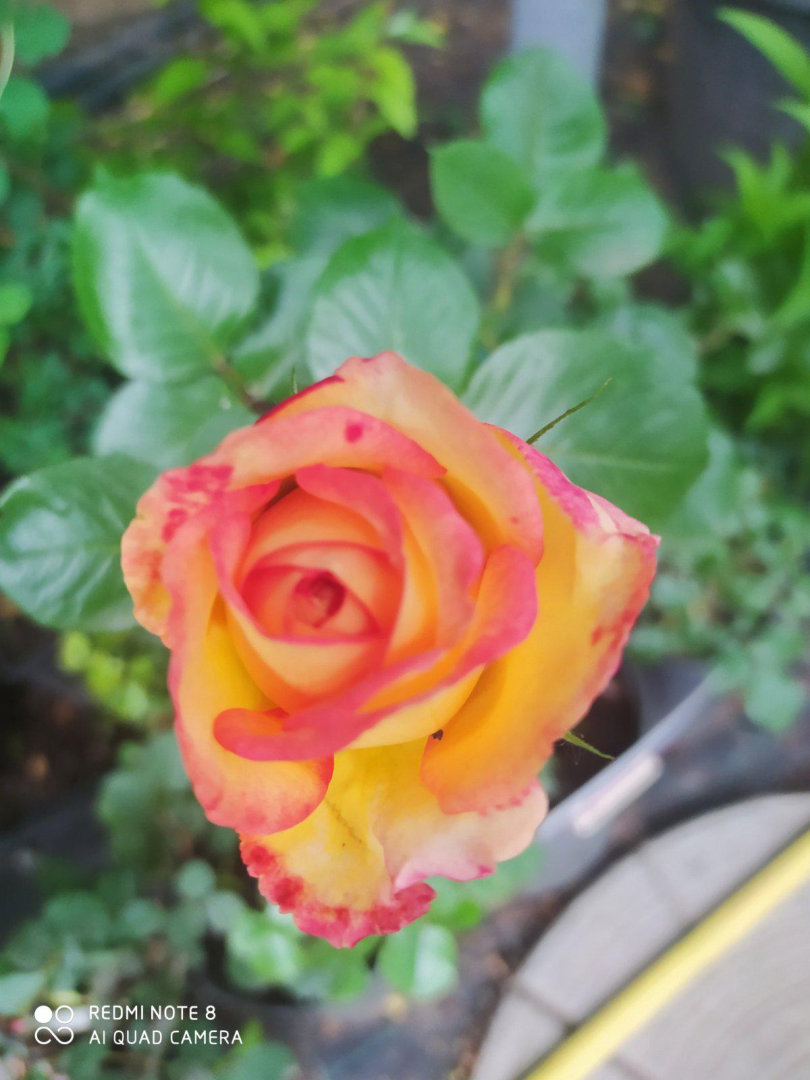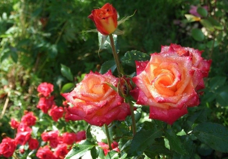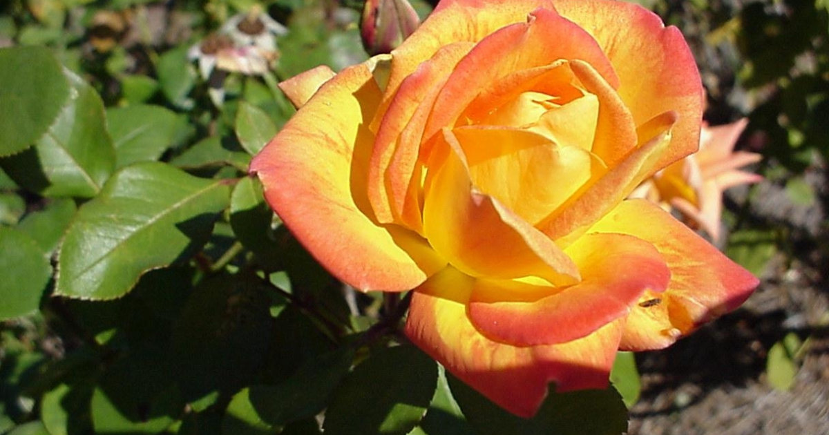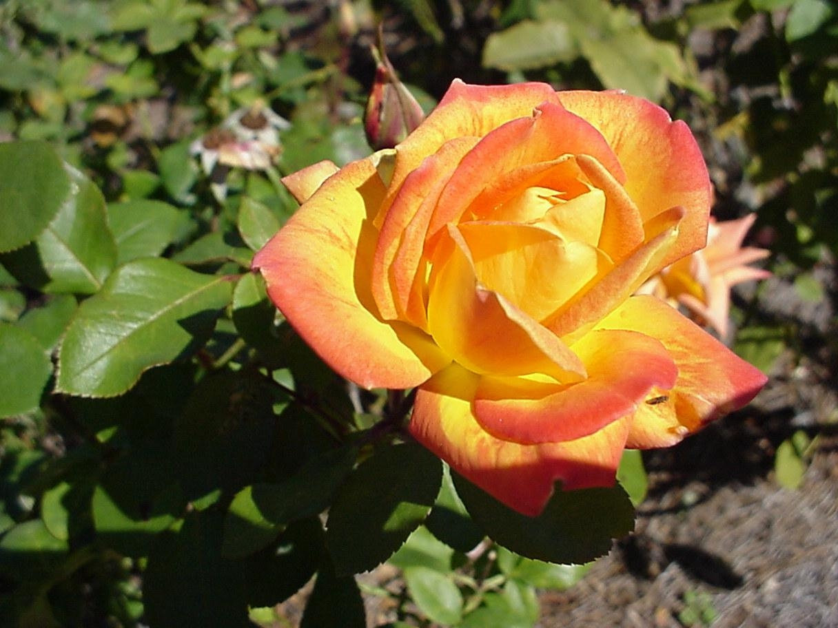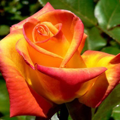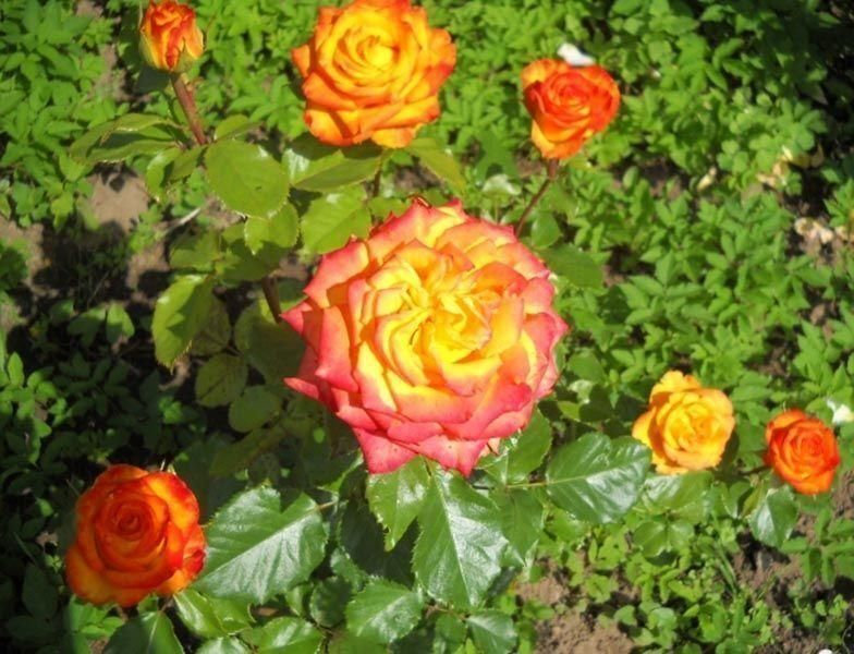 Надзвичайно популярний сорт, завдяки своєму яскравому забарвленню та невибагливості у догляді. Квіти великі, 7-8 см у діаметрі, дуже ароматні, з’являються по одному або у суцвіттях по 3-4 шт. Забарвлення пелюсток червоне по краях і золотисте до центру, що створює дуже яскравий контраст. Кущ високий, густий, покритий блискучим темно-зеленим листям. Сорт повторноквітучий, досить зимостійкий.