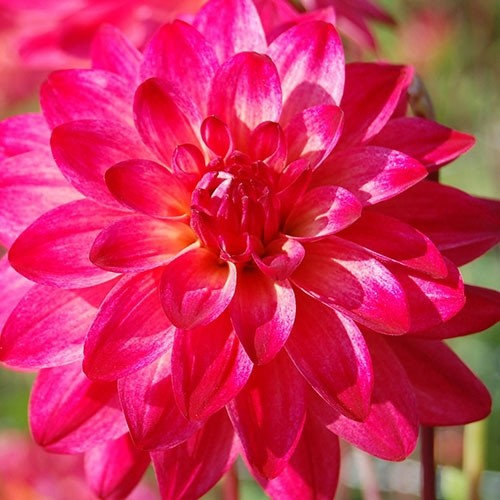 Жоржина Ekaterina - один з найгарніших сортів, відноситься до кулястого типу. Висота рослини до 80 см. Квітка діаметром 5-10 см, пелюстки рожево-червоного забарвлення, відчутний, приємний аромат. Цвітіння з другої половини червня до жовтня. Морозостійкість відсутня, при настанні заморозків усі жоржини обов'язково викопуються. До ґрунтів рослина невимоглива, посадка у легкій півтіні. Для отримання рясного цвітіння необхідно дотримуватися відстані між саджанцями близько 40-60 см. Всупереч вологолюбству полив здійснюється без застою води. Використовується на зріз, квітконоси стійкі, чудово виглядають у букетах. В основному застосовується для створення клумб для прикраси присадибних господарств.