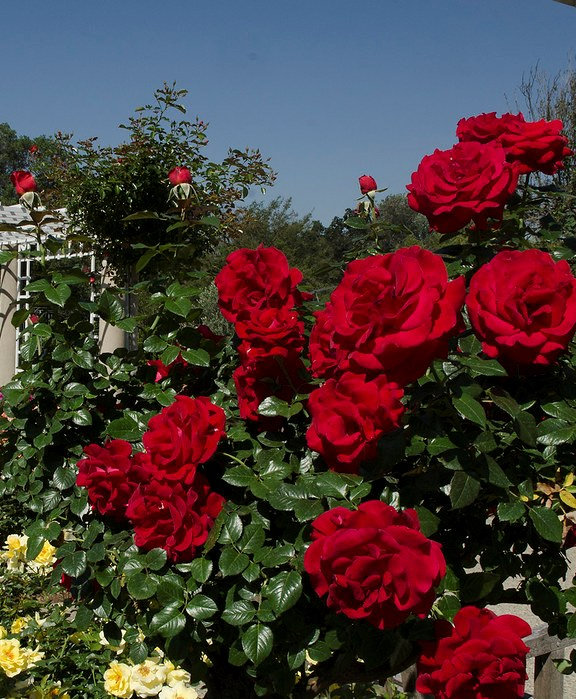 Пройшов один рік. На фото ті самі саджанці троянд, які Ви бачили на попередніх фото, пересаджені в більші горщики. І ми впевнені, що, будучи висадженими у відкритий грунт на Вашій присадибній ділянці, вони розрослися і зміцніли за цей рік набагато сильніше.